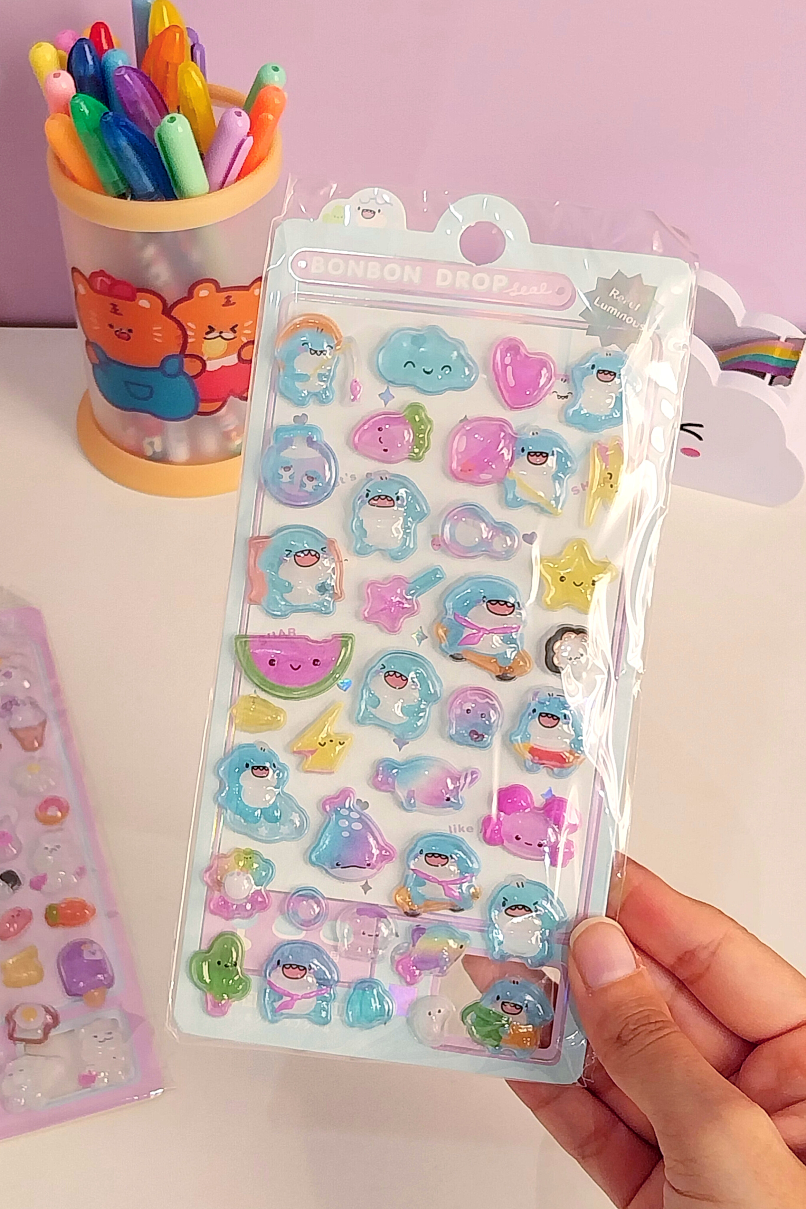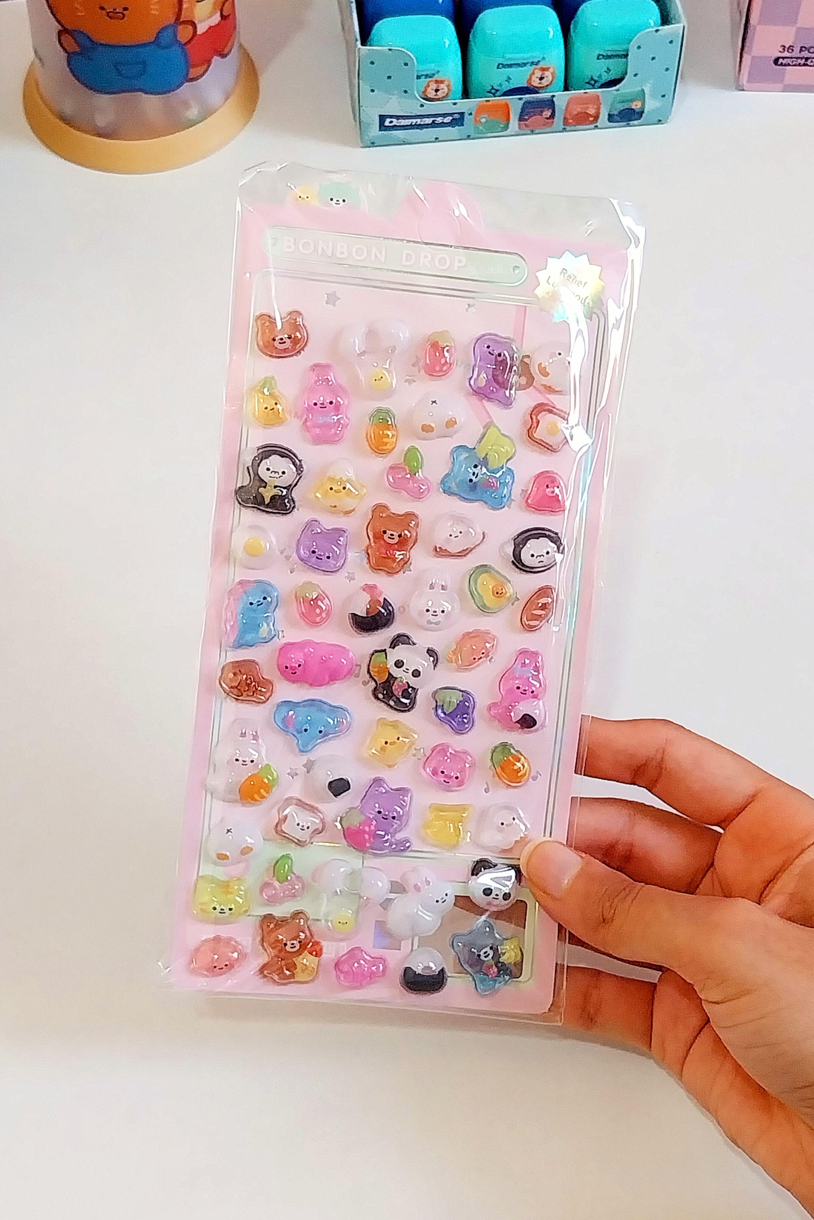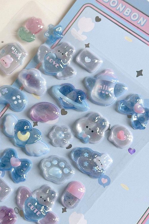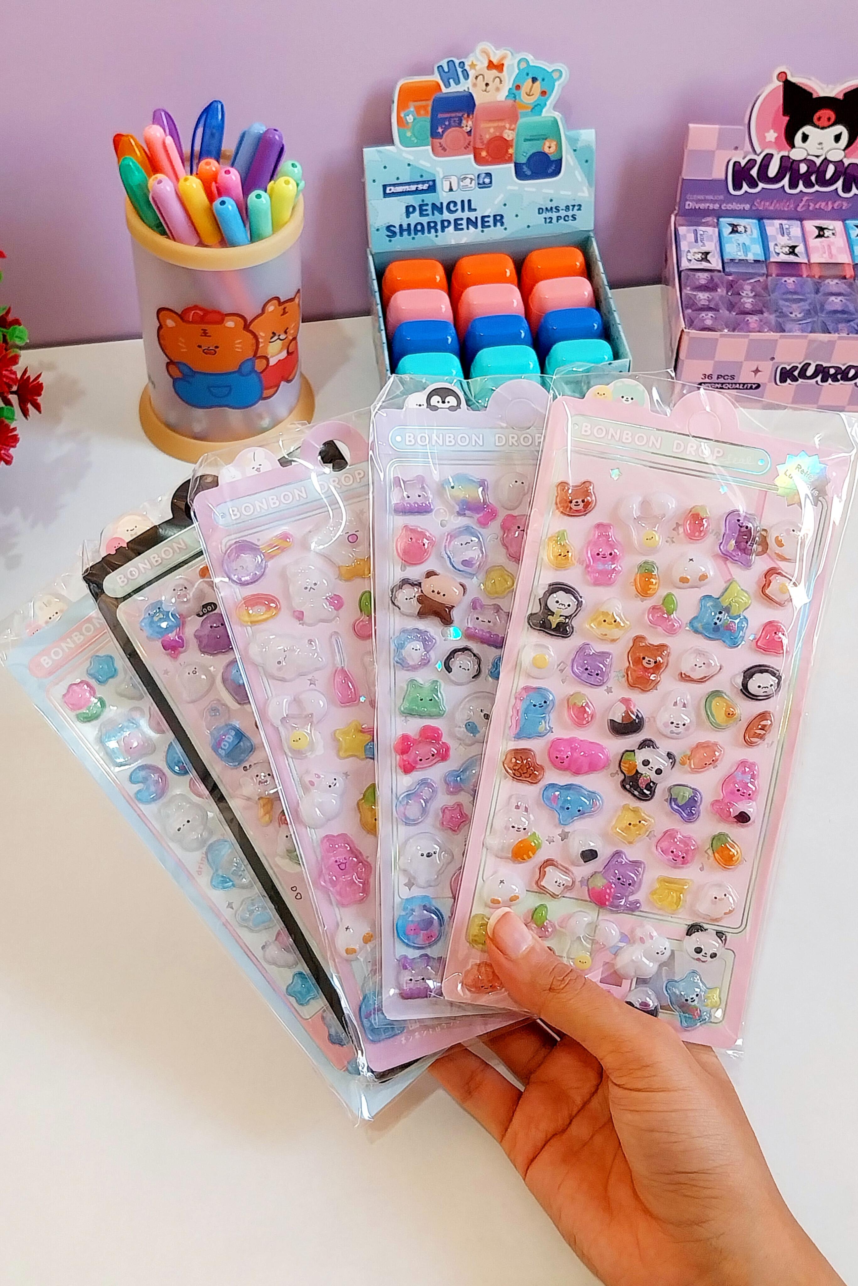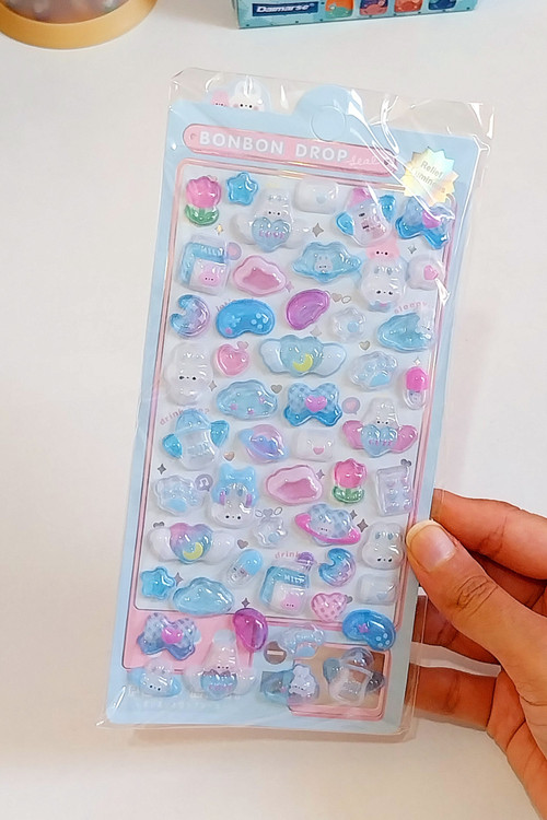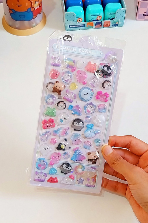 هر ورق بیش تر از 50 تا استیکر حبابی شفاف داره که پر از جزئیات که خاص ترش کرده💞